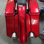 Harley Davidson LightBagger №1 Стилизация задней части мотоцикла Harley Davidson Electra Glide в bagger. Изготовление насадок на выхлопные трубы из нержавеющей стали с алюминиевыми концевиками. Покраска в цвет Deep Red Candy